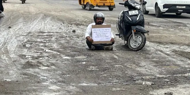 బైక్పై వెళ్తే నిబంధనల పేరుతో ఫైన్ వేస్తున్నారు. అన్ని రకాల టాక్సులు వసూలు చేస్తున్నారు. కానీ.. రోడ్డు మరమ్మతులు చేయడం లేదంటూ ఓ యువకుడు వినూత్న రీతిలో నిరసన తెలిపారు. ఏకంగా నడిరోడ్డుపై గుంతలో కూర్చొని నిరసన తెలిపారు. అధికారులకు ఎన్నిసార్లు ఫిర్యాదు చేసిన పట్టించుకోలేదని ఆవేదన వ్యక్తం చేశారు.