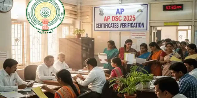 రాష్ట్ర వ్యాప్తంగా ప్రతిష్టాత్మకంగా చేపట్టిన మెగా డీఎస్సీ నియామక ప్రక్రియ తుది దశకు చేరుకుంది. ఇటీవల మెరిట్ లిస్ట్ విడుదల చేసిన విద్యాశాఖ తొలుత ఇచ్చిన ప్రకటన మేరకు ఆగస్ట్ 25వ తేదీ నుంచి సర్టిఫికెట్ల వెరిఫికేషన్ ప్రారంభంకావల్సి ఉంది. అయితే ఈ ప్రక్రియ ఆగస్ట్ 26వ తేదీకి వాయిదా పడింది. దీంతో నేటి నుంచి ఈ ప్రక్రియ మొదలుపెట్టనున్నారు.