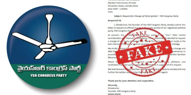 ఆంధ్రప్రదేశ్ రాజకీయాల్లో తాజాగా కీలక పరిణామం చోటుచేసుకుంది. వైసీపీ పార్టీ గుర్తును మార్చాలని ఆ పార్టీ వ్యవస్థాపకుడు శివకుమార్ ఎన్నికల సంఘానికి లేఖ రాశాసినట్టు ఉదయం నుంచి సోషల్ మీడియాలో తెగ ప్రచారం జరిగింది. పార్టీకి ప్రస్తుతం ఉన్న ‘ఫ్యాన్’ గుర్తు స్థానంలో గొడ్డలి గుర్తును కేటాయించాలని తాను ఏకగ్రీవంగా నిర్ణయించానని లేఖలో శివకుమార్ పేర్కొన్నట్టు కనిపించింది. వైసీపీ పార్టీ భవిష్యత్తు దృష్ట్యా ఈ నిర్ణయం తీసుకుంటున్నానని ఆయన లేఖలో ప్రస్తావించినట్టు వార్తలు వచ్చాయి.